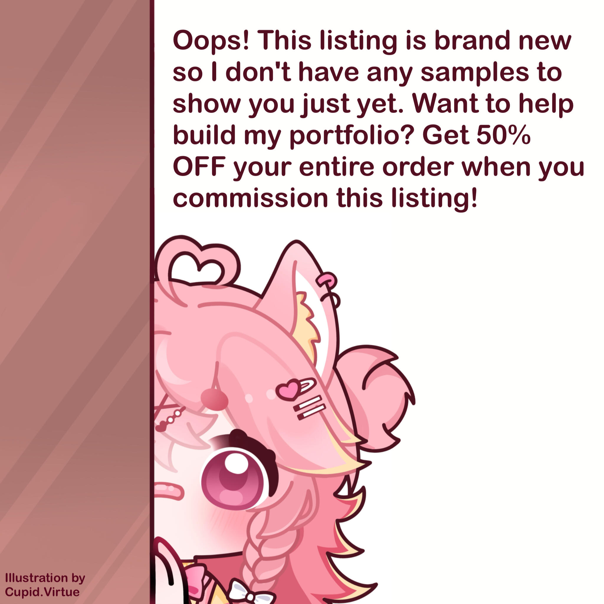 Optional extras that can be added to your commission to enhance its visual complexity or customization. These include backgrounds, NSFW content, additional characters, companions, props, alternative expressions, and more. Chibi addons are offered at a lower price than listed.